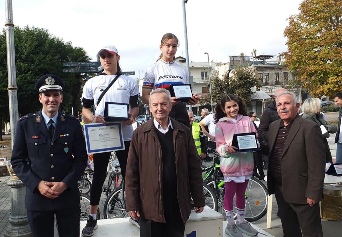 Πρώτη η Αγγελική Βαΐου, δεύτερη η Κατερίνα Χασιώτη, τρίτη η Στεργιάνα Κοντονάσιου. Τις απονομές έκαναν αντιστοίχως, ο εκδότης του «Πρωινού Λόγου» κ.Μιχάλης Τσαρουχάς, ο διοικητής της Τροχαίας Τρικάλων κ. Κ. Κωστακόπουλος και το ιστορικό στέλεχος της ποδηλασίας κ. Γρηγόρης Πράππας.
