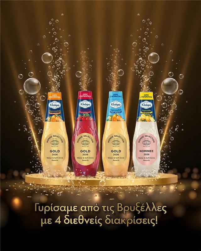 3 Χρυσά Βραβεία και μία διάκριση για τα αναψυκτικά Κλιάφα στα Quality Awards 2026 της Monde Selection
