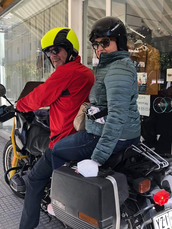 Δυο γνωστά πρόσωπα της Τρικαλινής κοινωνίας ο mister e-trikala Οδυσσέας Ράπτης και η σύζυγός του επιχειρηματίας Δέσποινα Σαμαρά με το μηχανοκίνητο ιδιωτικό μέσο σπεύδουν προφανώς προς την ελευθερία …..Με χαμόγελό αισιοδοξίας, ανεβάζουν ταχύτητα για το εμβολιαστικό κέντρο της πόλης όπου και η φωτό από το f/b