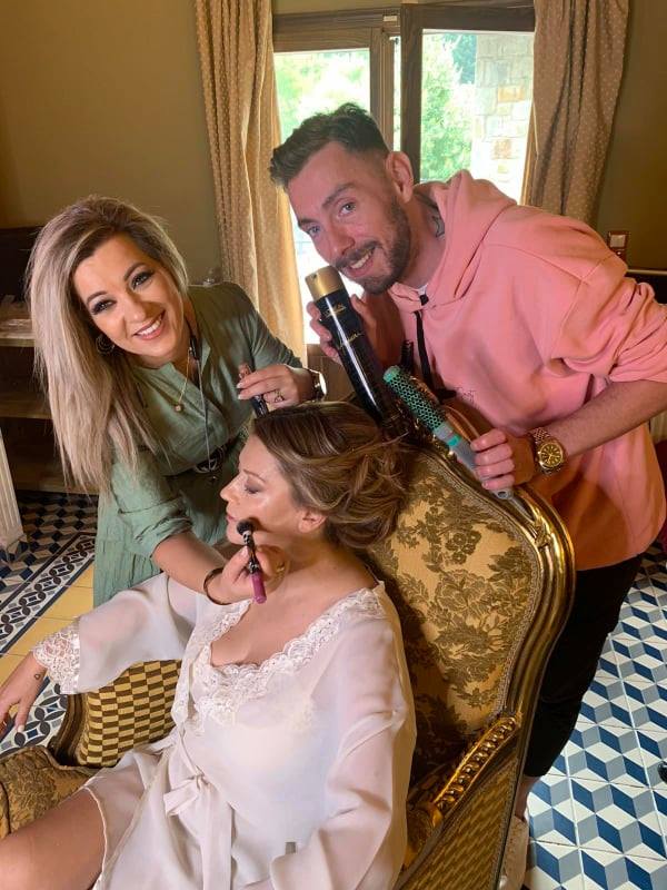 Την όμορφη Ελένη ετοίμασαν στο υπέροχο ξενοδοχείο Μαντάνια, η make up artist Μαρία Νταβατζίκου και το σινιόν χτένισμα που ταίριαζε απόλυτα με το νυφικό ο κομμωτής, Hair art by Venet Dimitrios! Υπέροχο νυφικό Φώτο Λάζος.
