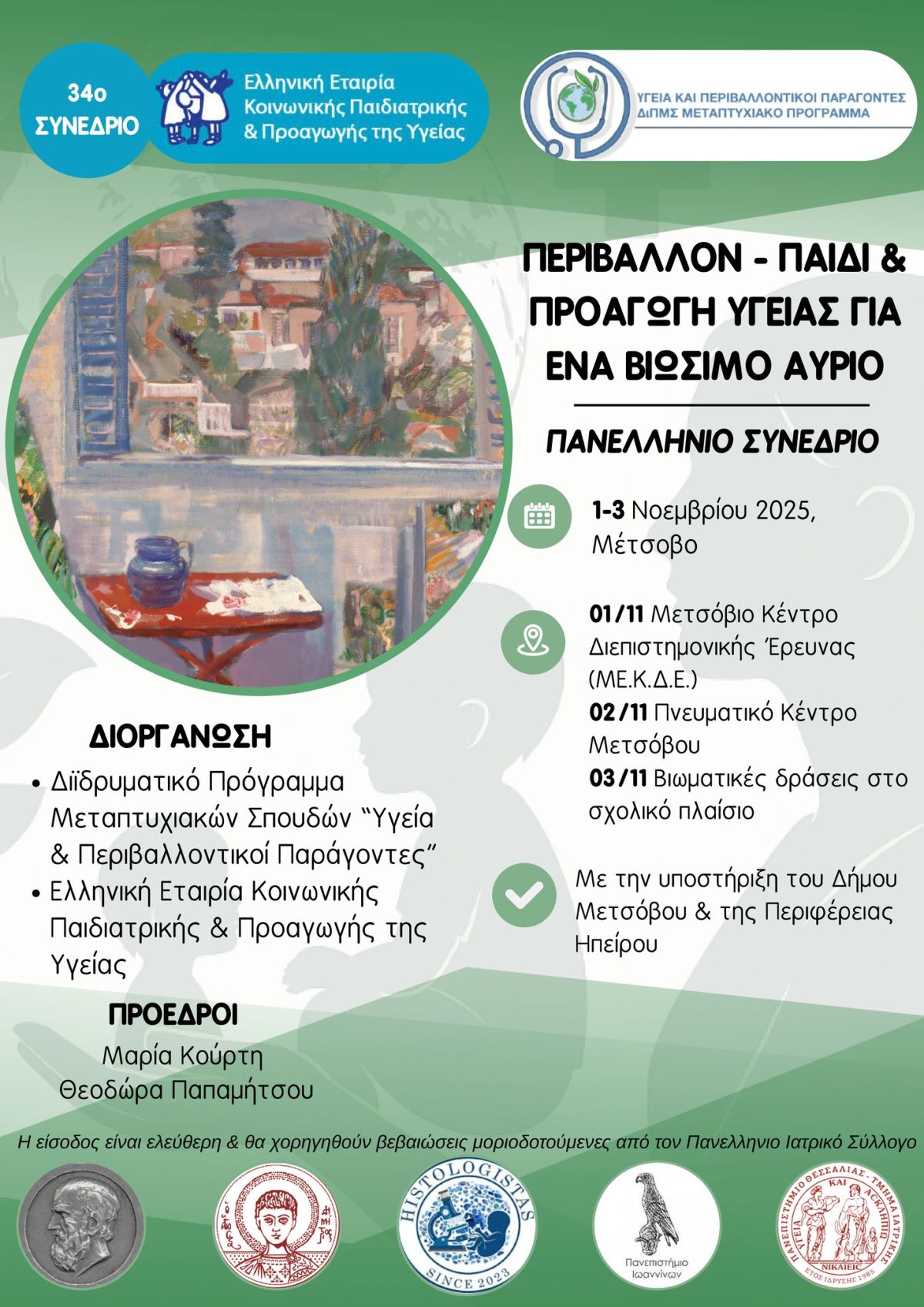Συνέδριο: «Περιβάλλον και Παιδί – Προαγωγή Υγείας για ένα Βιώσιμο Αύριο» 1–3 Νοεμβρίου 2025 | Μέτσοβο