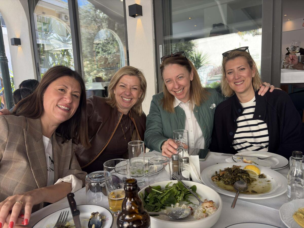 Στο περιθώριο του νηστίσιμου γεύματος στο ΜΠΕΡΔΕΜΑ, τα βλέμματα τράβηξε και ένα όμορφο γυναικείο ενσταντανέ: η σύζυγος του υπουργού, Σούλα Μπράκη,και μηχανικός του Δήμου Τρικκαίων, αλλά και τις κυρίες της «πρώτης γραμμής» του e-Trikala, Βίβιαν Τέγου και Βασιλένα Μητσιάδη, καθώς και την αντιδήμαρχο Οικονομικών Σοφία Αλεστά.