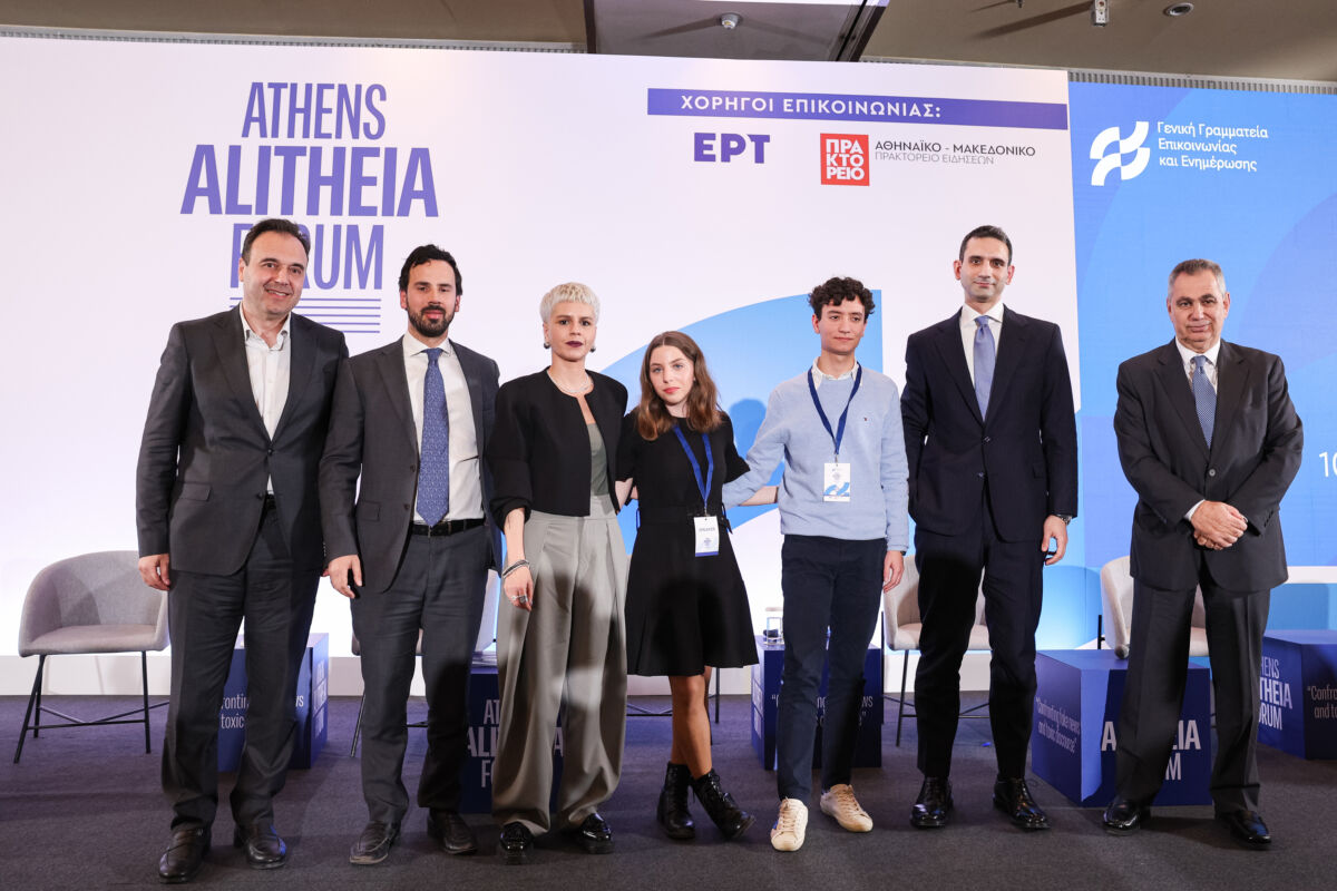 «Fake news με ένα κλικ» ήταν το θέμα της συζήτησης της δημοσιογράφου Ελένης Ευαγγελοδήμου με τον Υπουργό Ψηφιακής Διακυβέρνησης και Τεχνητής Νοημοσύνης Δημήτρη Παπαστεργίου, τον Διευθυντή Ψηφιακής Επικοινωνίας του Πρωθυπουργού Νίκου Ρωμανού, τον δικηγόρο Ιάκωβο Σαρμά, τον Διευθυντή Ρ/Σ ΣΚΑΙ 100,3 Βασίλη Χιώτη και μαθητών, κατά τις εργασίες της πρώτης μέρας του διήμερου Συνεδρίου Athens Alitheia Forum, με θέμα «Η Τοξικότητα και ο Δημόσιος Λόγος στη Δημοκρατία», που διοργανώνει η Γενική Γραμματεία Επικοινωνίας και Ενημέρωσης και ο Υφυπουργός παρά τω Πρωθυπουργώ Παύλος Μαρινάκης.