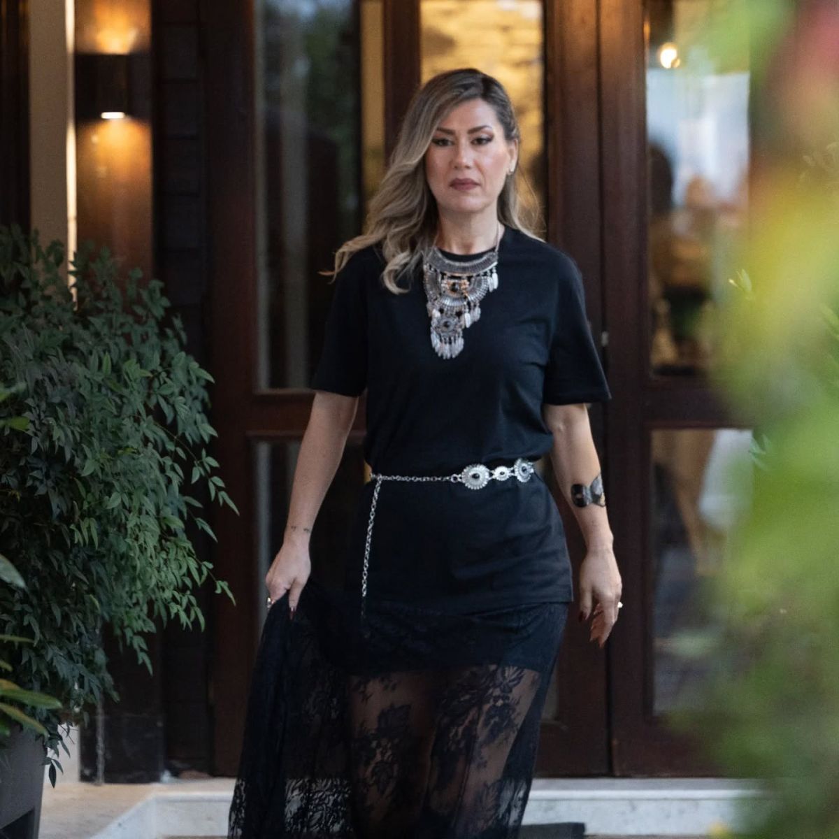 Η σκηνική της παρουσία μαγνητίζει. Με total black σύνολο, εντυπωσιακή μαύρη τούλινη λεπτομέρεια κάτω από τη μίνι φούστα και attitude γεμάτο αυτοπεποίθηση και στυλ, η Ειρήνη Καραβασίλη συνδυάζει αρμονικά την αισθητική με την ουσία.