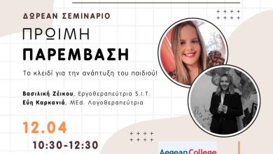 Newsroom09/04/2025Δωρεάν Σεμινάριο: «Πρώιμη Παρέμβαση – Το κλειδί για την ανάπτυξη του παιδιού»