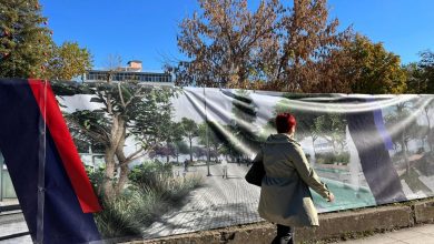 Ευρηματικό και μάλλον ικανοποιητικό ως προς το αισθητικό μέρος ο μουσαμάς με φωτογραφία τις μακέτες οι οποίες δείχνουν την πλατεία…