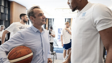 Με τους αθλητές της Εθνικής ομάδας μπάσκετ συναντήθηκε ο Μητσοτάκης (φωτ.)