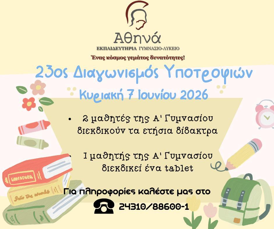 Εκπαιδευτήρια ΄΄Αθηνά΄΄: Ο 23ος Διαγωνισμός Υποτροφιών είναι πραγματικότητα!