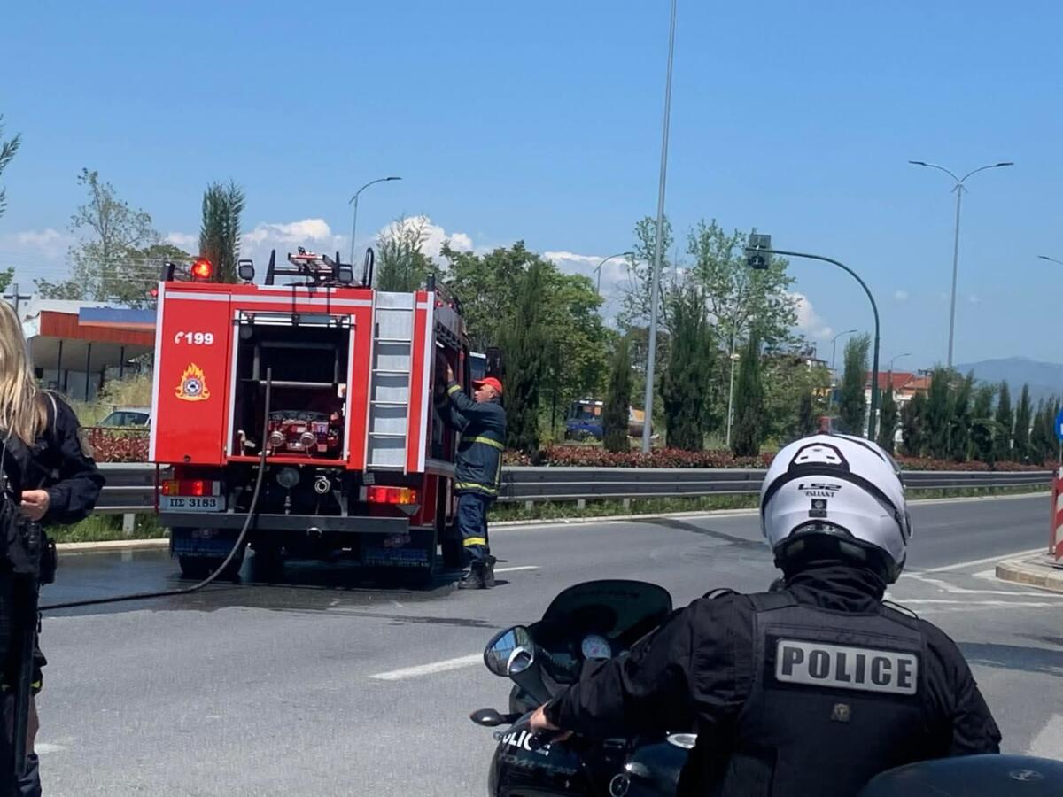 Στιγμές τρόμου εκτυλίχθηκαν γύρω στη μία το μεσημέρι σε έναν από τους πιο πολυσύχναστους οδικούς άξονες, όταν αυτοκίνητο που κινούνταν κανονικά μετατράπηκε μέσα σε λίγα δευτερόλεπτα σε πύρινη μάζα.
