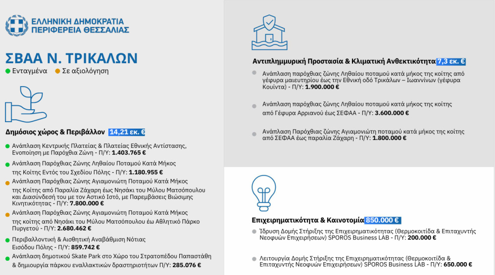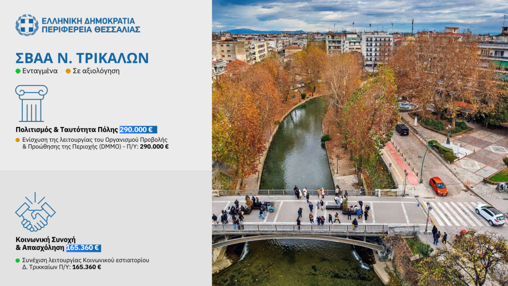 Η Περιφέρεια Θεσσαλίας επενδύει στην Βιώσιμη Αστική Ανάπτυξη-22.815.360€ για τα Τρίκαλα