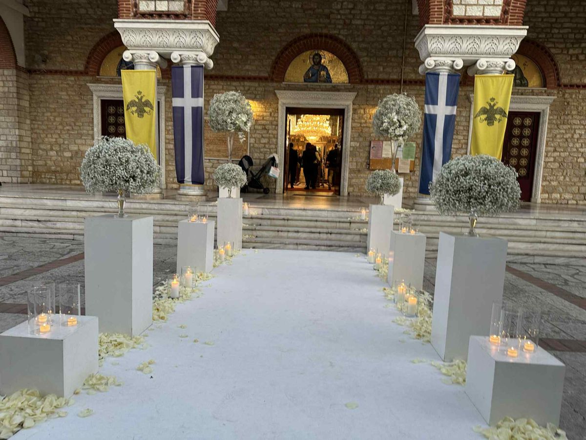 Ο στολισμός του ναού, αλλά και του χώρου της δεξίωσης, είχε την υπογραφή του ανθοπωλείου Fluers, προσφέροντας μια ονειρική αισθητική, ενώ η Marie Bomboniere επιμελήθηκε την διακόσμηση και τις μπομπονιέρες, προσθέτοντας ρομαντικές πινελιές σε κάθε λεπτομέρεια.