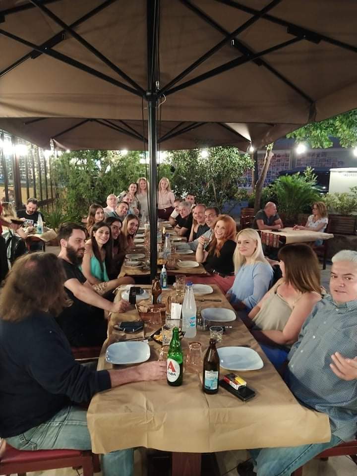 Μια τρικαλινή ανάμεσα στην παρέα του Εμβολιαστικού Κέντρου στο ΚΥ Πλατείας Αττικής στην Αθήνα. Η Αλεξάνδρα Κόσσυβα που εργάζεται πλέον στην Αθήνα μαζί με συναδέλφους της που δίνουν τη μάχη του εμβολιασμού συναντήθηκαν σε μια βραδινή …έξοδο ξεκούρασης και απόλαυσης.