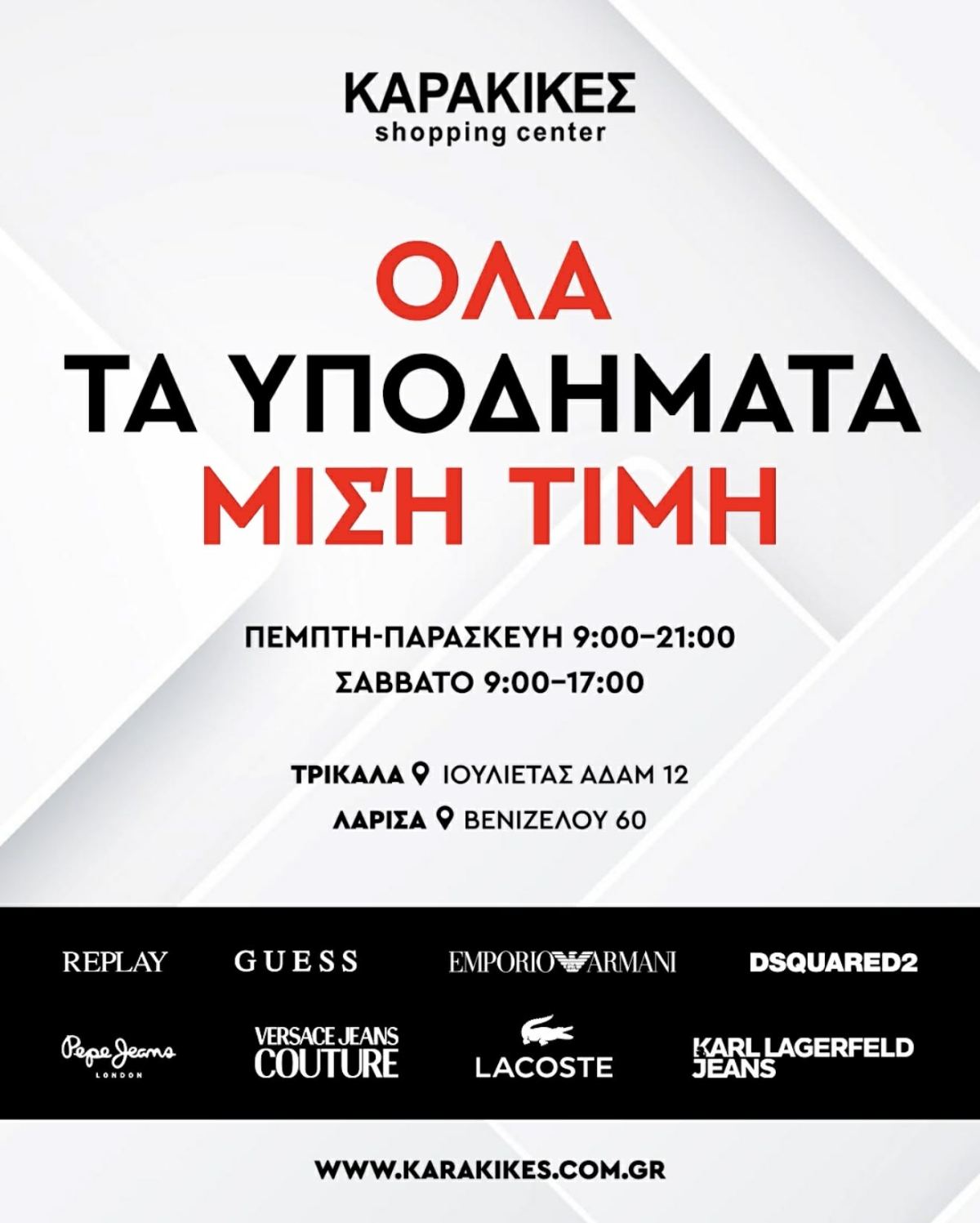 ΑΝΔΡΙΚΑ • ΓΥΝΑΙΚΕΙΑ • ΠΑΙΔΙΚΑ KARAKIKES SHOPPING CENTER