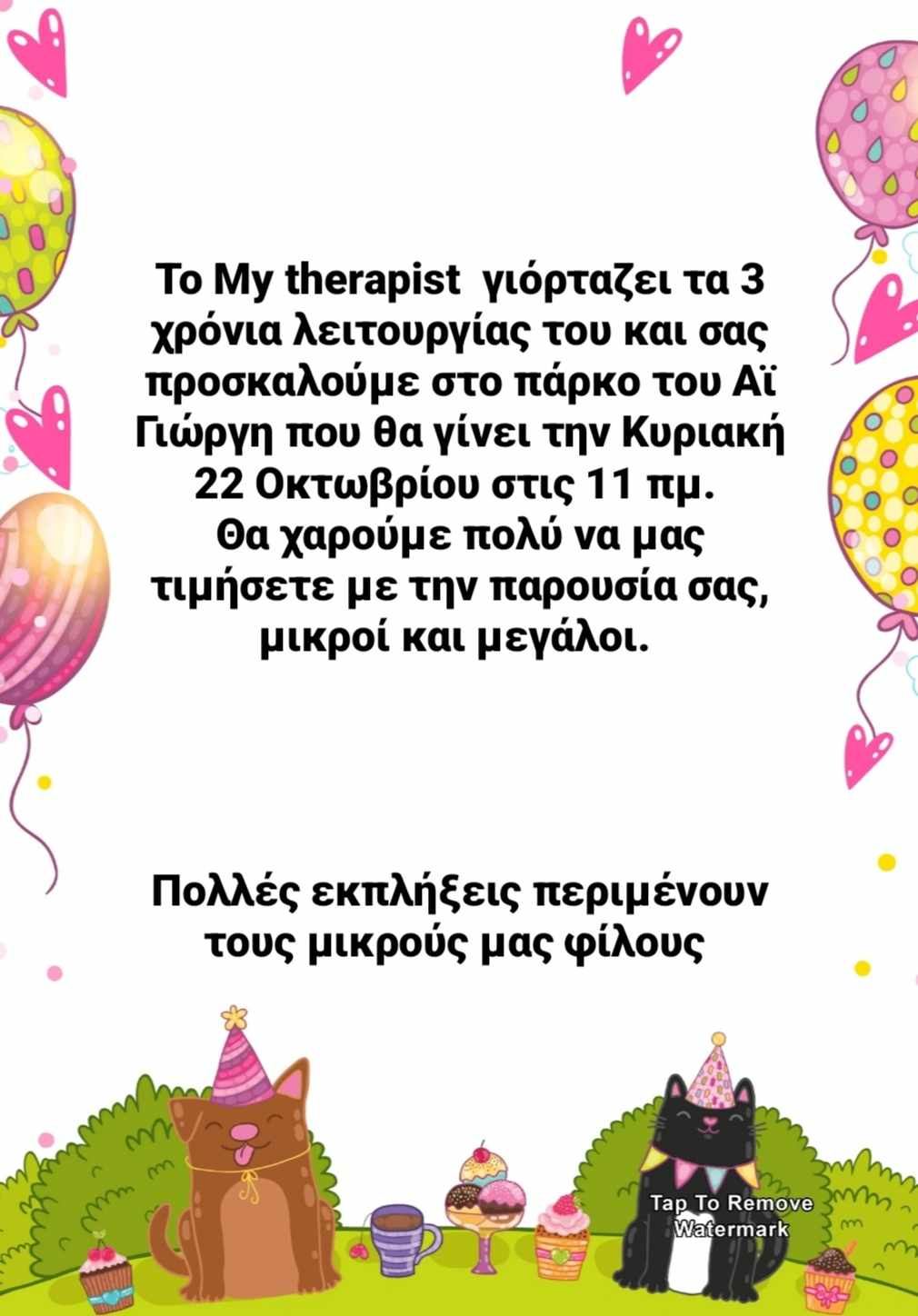 My Therapist γιορτάζει τα 3 χρόνια λειτουργίας του & σας προσκαλεί σε μια μεγάλη γιορτή!