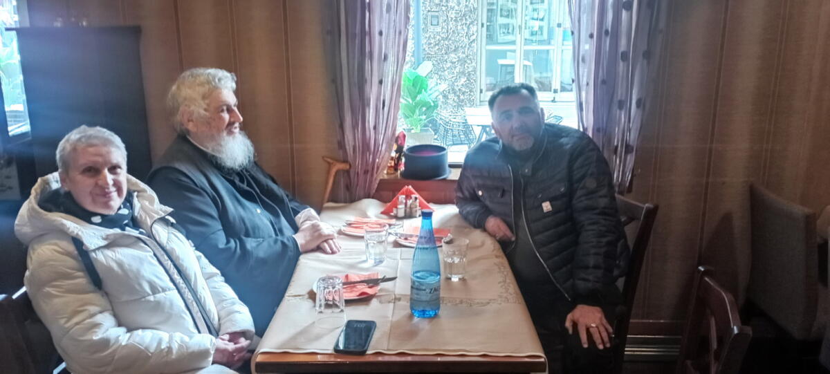 Με τον σεβαστό Γέροντα π. Ευάγγελο Κατσαρά επισκεφθήκαμε τα όμορφα Γρεβενά και τον μητροπολιτικό ναό της πόλης, σε μια συνάντηση γεμάτη συγκίνηση και ζεστασιά. Εκεί ανταμώσαμε με ιερείς και λαϊκούς, αγαπημένους γνωστούς και φίλους από τα παλιά, αλλά και ανθρώπους που με αγάπη και προτροπή του Γέροντα στηρίζουν το Σωματείο μας. Η χαρά της επανένωσης ήταν μεγάλη και βαθιά συγκινητική. Στη συνέχεια, κατευθυνθήκαμε στο Δοξαρά Γρεβενών, όπου μας περίμεναν με ανοιχτές αγκαλιές φίλοι και γνωστοί, για να υποδεχθούν εγκάρδια τον π. Ευάγγελο, τον κτήτορα του ναού τους. Για πολλούς από αυτούς δεν είναι απλώς ένας ιερέας, αλλά ένας άνθρωπος που τους συνδέει με ιερές στιγμές της ζωής τους — άλλους τους βάπτισε και άλλους τους στεφάνωσε.