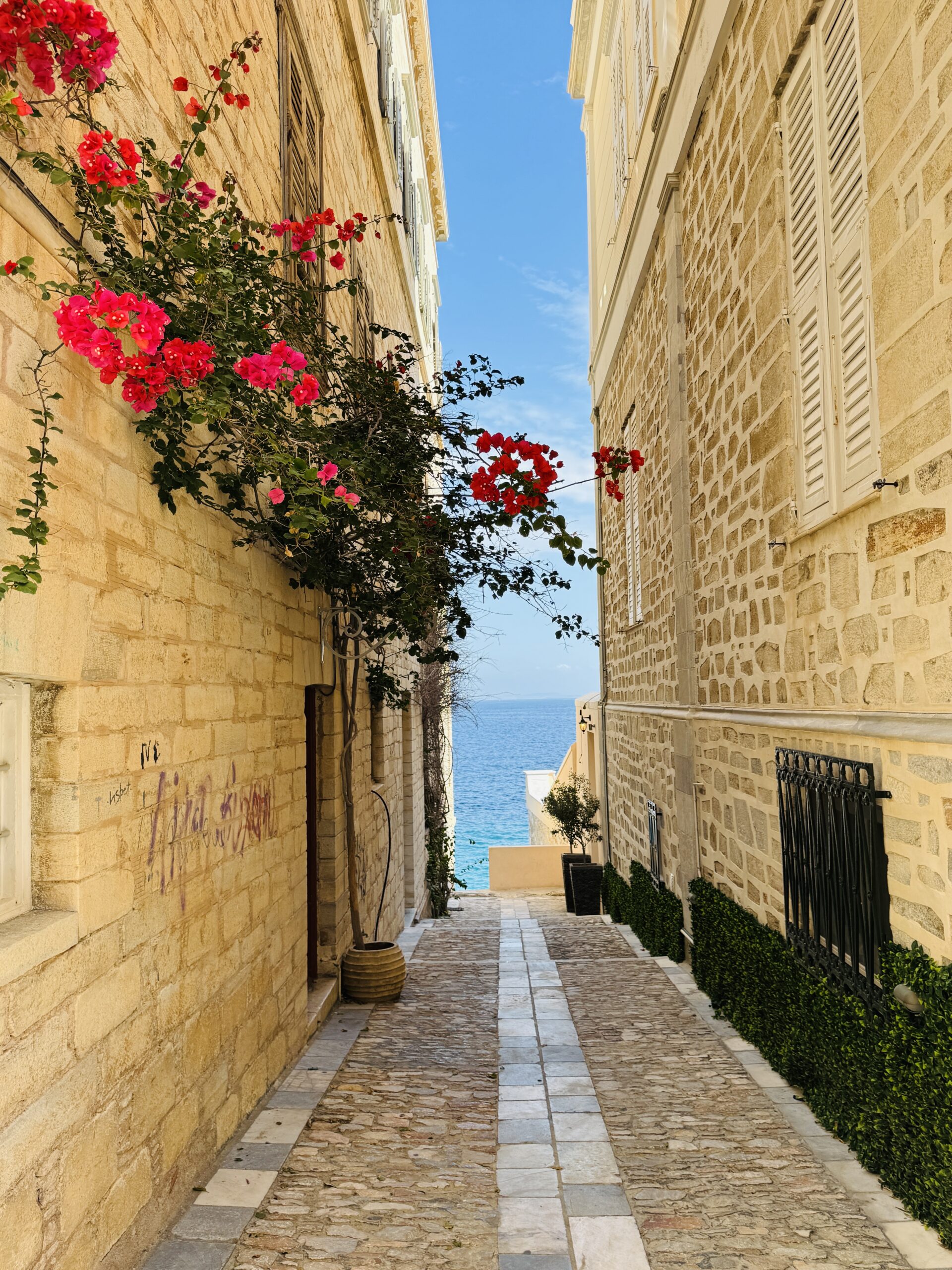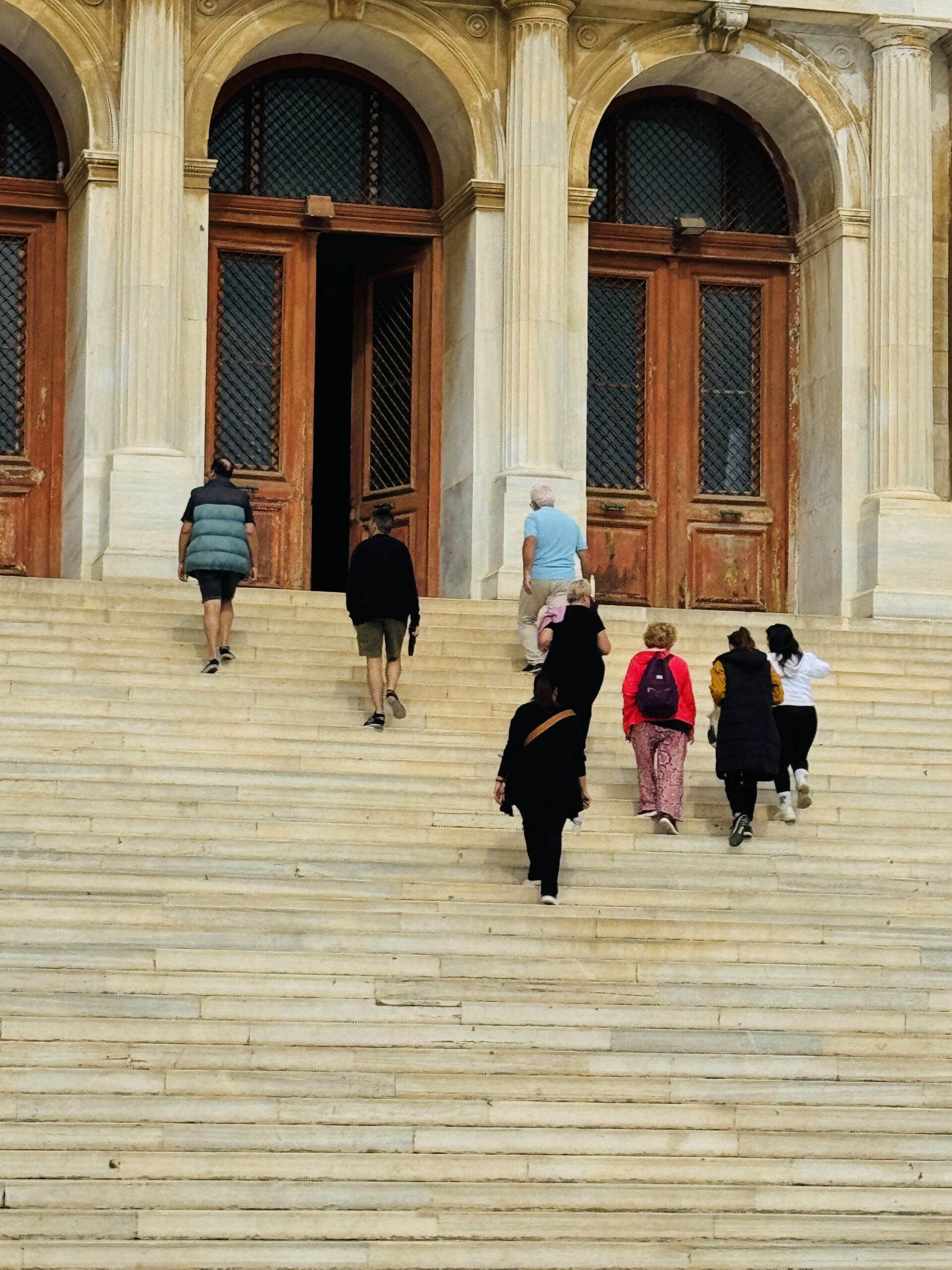 Καθώς περπατώ στα στενά με τα περίτεχνα μπαλκόνια και τις σκαλιστές πόρτες, η ανάβαση κορυφώνεται. Μπροστά μου, στο βάθος του ορίζοντα, προβάλλει η επιβλητική, δίδυμη σιλουέτα του Ιερού Ναού του Αγίου Νικολάου.