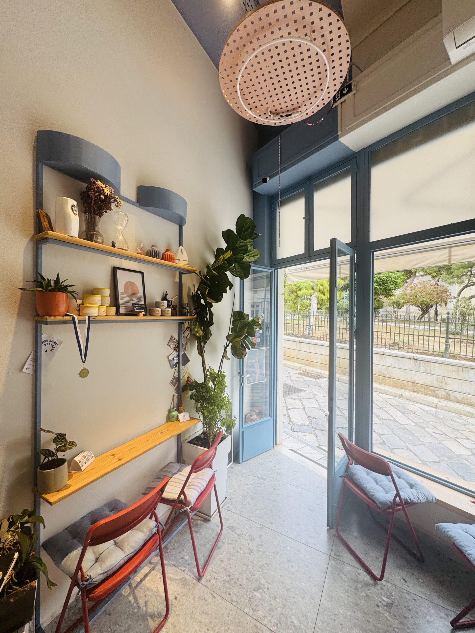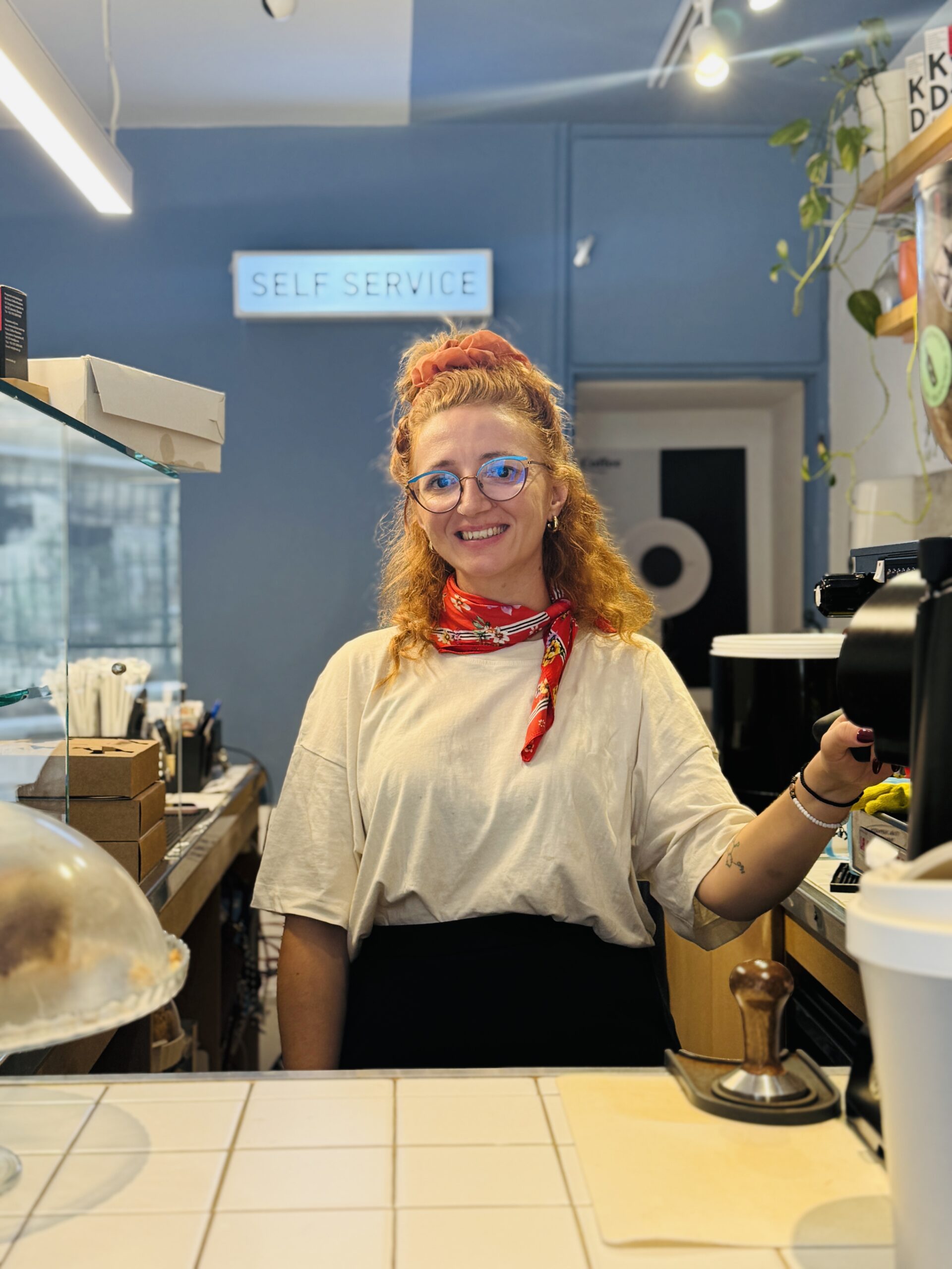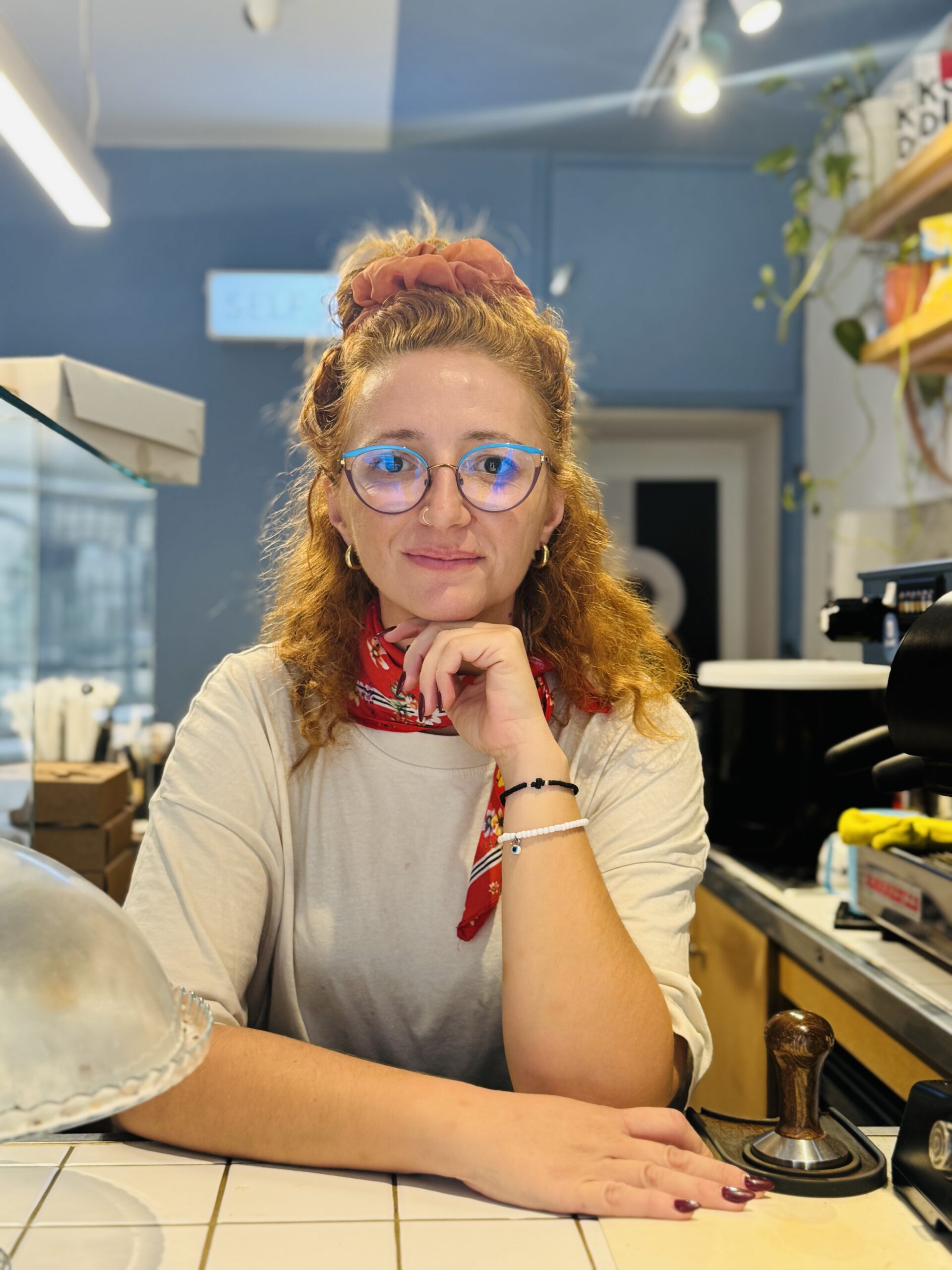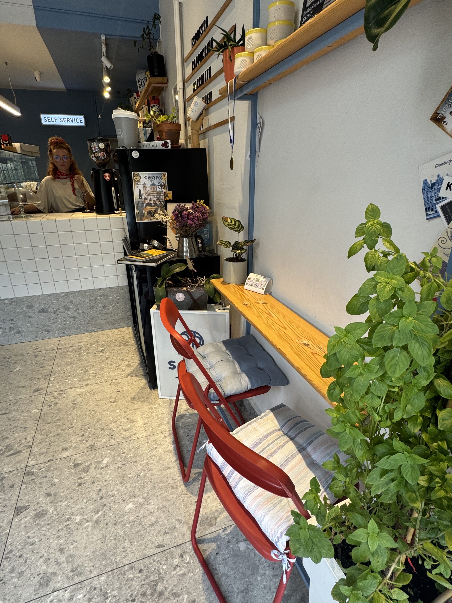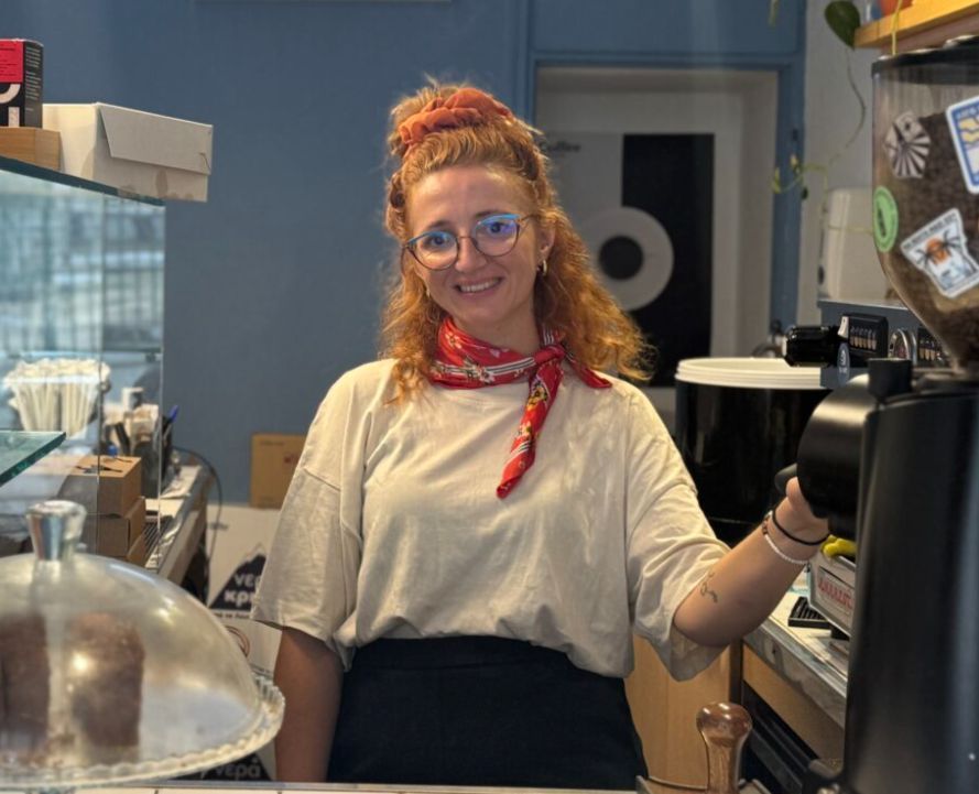 Χαμογελαστή, με κόκκινα μαλλιά και μεγάλα γυαλιά, η Χριστίνα σε υποδέχεται λες και γνωρίζεστε χρόνια. Έχει καταφέρει, σε ελάχιστα τετραγωνικά, να δημιουργήσει έναν χώρο με ψυχή. Όμορφες γωνιές για να απολαύσεις τον καφέ σου στο εσωτερικό, και απέναντι, στην είσοδο του κήπου της εκκλησίας, τρία ή τέσσερα ξύλινα τραπεζάκια, όπου μπορείς να καθίσεις και να αφουγκραστείς τη ζωή της γειτονιάς.