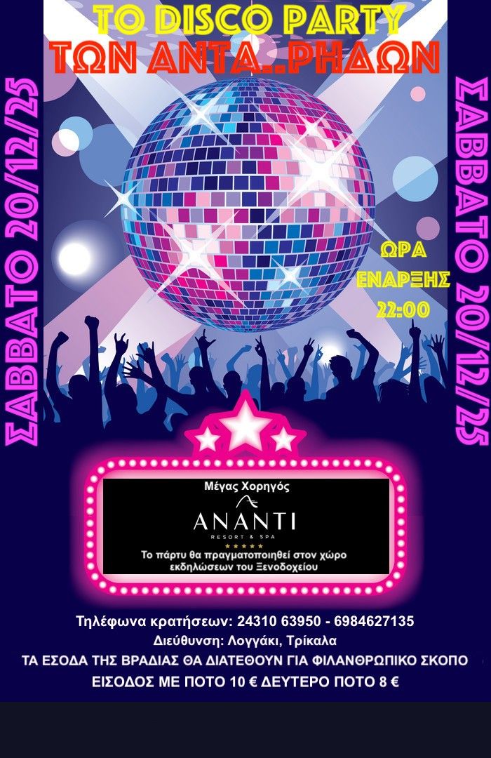 To »DISCO PARTY ΤΩΝ ΑΝΤΑ…ΡΗΔΩΝ» το Σάββατο 20 Δεκεμβρίου στο Ananti Resort