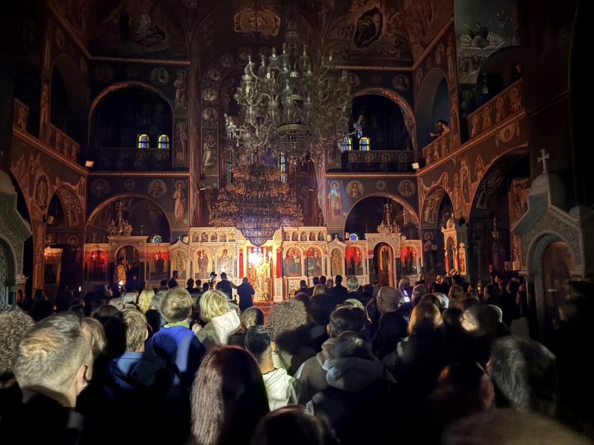 Με ιδιαίτερη λαμπρότητα και βαθιά κατάνυξη τελέστηκε η Αναστάσιμη Ακολουθία στον Μητροπολιτικό Ναό Αγίου Νικολάου στα Τρίκαλα, συγκεντρώνοντας πλήθος πιστών που κατέκλυσαν τον ιερό χώρο για να γιορτάσουν το χαρμόσυνο μήνυμα της Ανάστασης.